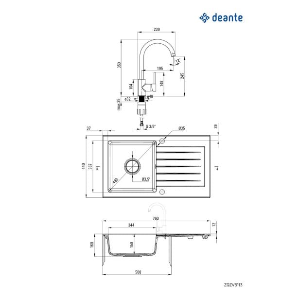 Domov » Trgovina » Oprema za dom » Kuhinje » Pomivalna korita » Granital » GRANITAL POMIVALNO KORITO DEANTE ZQZV 5113 SET Z ARMATURO
