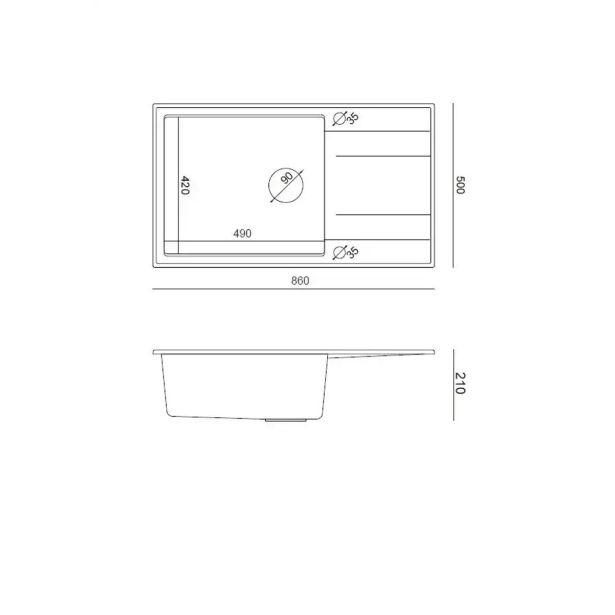 Enojno korito z odcejalnikom, dimenzij 86 x 50 x 21 cm.