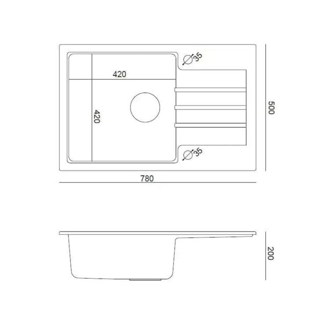 Enojno korito z odcejalnikom, dimenzij 78 x 50 x 20 cm.