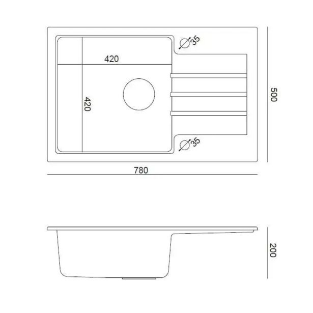 Enojno korito z odcejalnikom, dimenzij 78 x 50 x 20 cm.