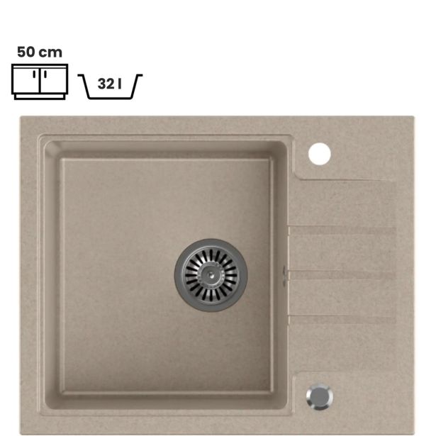 Enojno korito z odcejalnikom, dimenzij 62 x 50 x 20 cm.
