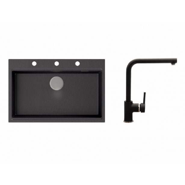 Set Sink Solution SOLLER sestavlja pomivalno korito FIBER 800 + in kuhinjska armatura Maya all black.