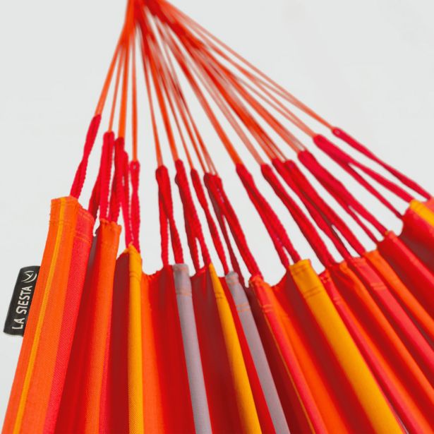 Klasična viseča mreža iz vremensko odpornega materijala.