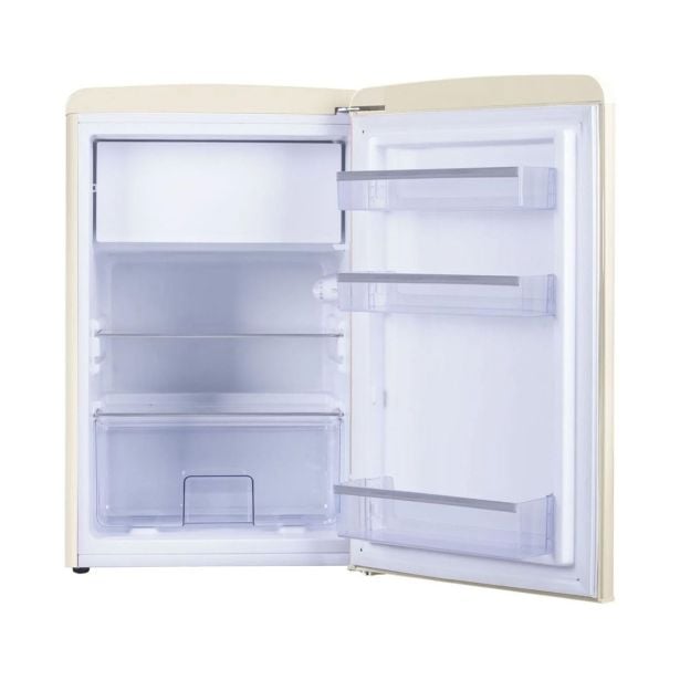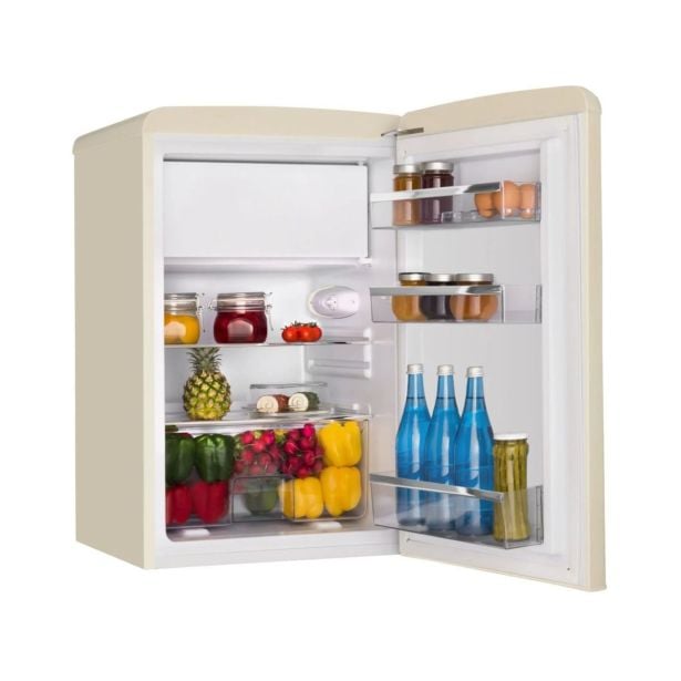 S svojo značilno in prepoznavno vintage obliko ter barvo odraža mladostni pridih nostalgije, ki se elegantno poda v prav vsako kuhinjo. Hladilnik navdušuje s samodejnim odtaljevanjem hladilnega dela, 95 litrsko prostornino hladilnega in 13 litrsko prostornino zamrzovalnega dela, dvema prostornima policama, tremi dodatnimi policami na vratih hladilnika in predalom za sadje in zelenjavo. Prijetna LED osvetlitev v notranjosti omogoča izvrsten pregled nad shranjenimi živili, ki bodo ob nenačrtovanem izpadu energije udobno shranjena še 11 ur.