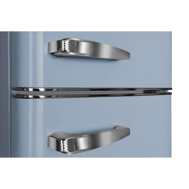 Hladilnik se pohvali s samodejnim odtaljevanjem hladilnega dela, veliko 181 litrsko prostornino hladilnega in 63 litrsko prostornino zamrzovalnega dela. Štiri prostorne police, tri dodatne police na vratih hladilnika ter predal za sadje in zelenjavo v hladilnem delu zadostujejo vsem potrebam velike družine. Prijetna LED osvetlitev in dodaten nosilec za steklenice v notranjosti omogočata izvrsten pregled nad shranjenimi živili. Trije predali v zamrzovalnem delu in 15 urno ohranjanje temperature ob nenačrtovanem izpadu energije zagotavljajo udobno in varno hrambo živil. Atraktivna trendovska retro oblika in izjemno pestra barvna ponudba odražata mladostni pridih nostalgije, ki se elegantno poda v prav vsako kuhinjo.