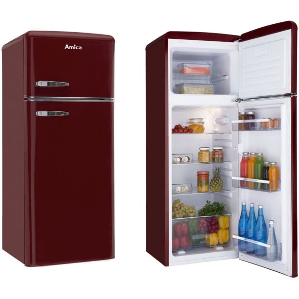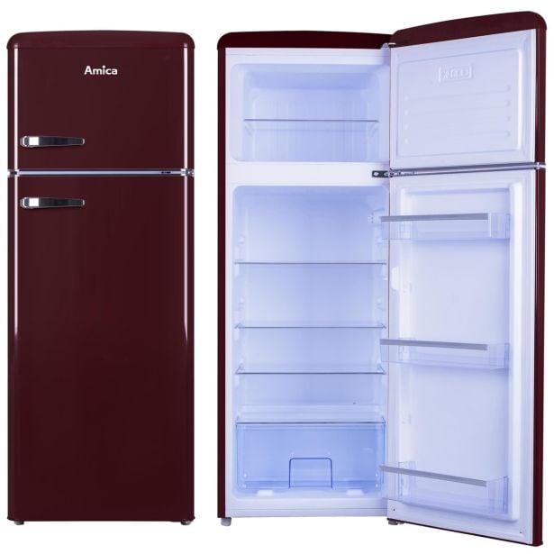 Prostostoječi retro hladilnik Amica KGC15631R poleg izjemnih lastnosti navdušuje s svojo izjemno značilno vintage obliko in barvo.