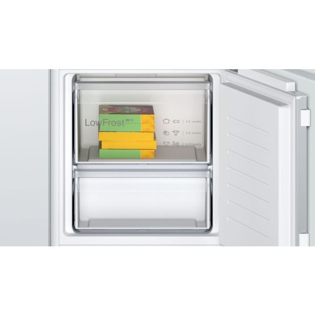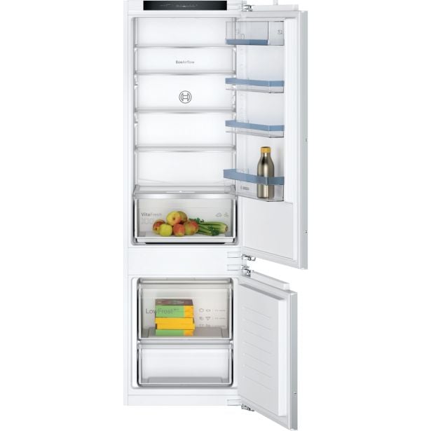 Vgradni hladilnik z zamrzovalnikom spodaj v kombinaciji z VitaFresh XXL predalom, ki ohrani živila dlje časa sveža.