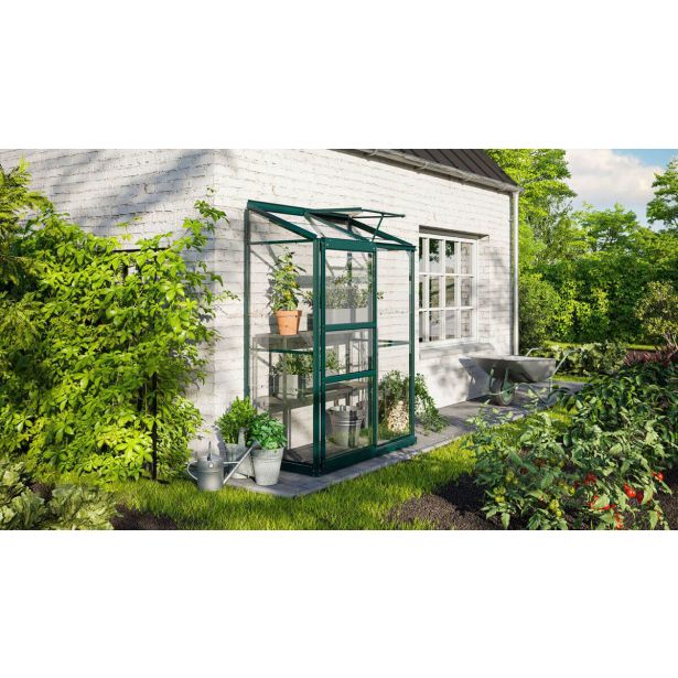 Naslonjeni rastlinjak Ida s svojo majhno tlorisno površino in polno višino omogoča gojenje zelišč in zelenjave ter prezimovanje visokih lončnic na vrtu pred vrtom, na terasi ali balkonu.