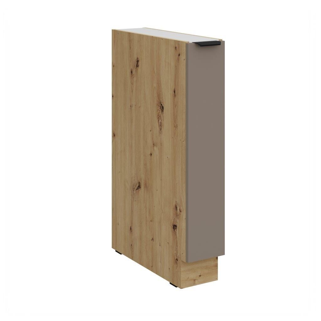 Izvlečna omara ARIANA hrast 15D je sestavljena iz laminirane plošče, debeline 16 mm, robovi so zaščiteni z ABS robom 1 mm, ročaji pa so iz kovine v črni barvi. Korpus je narejen iz laminirane plošče, debeline 16 mm, robovi so iz melamina. Kuhinjski element je na voljo v več barvnih kombinacijah in je opremljen z mehkim zapiranjem.