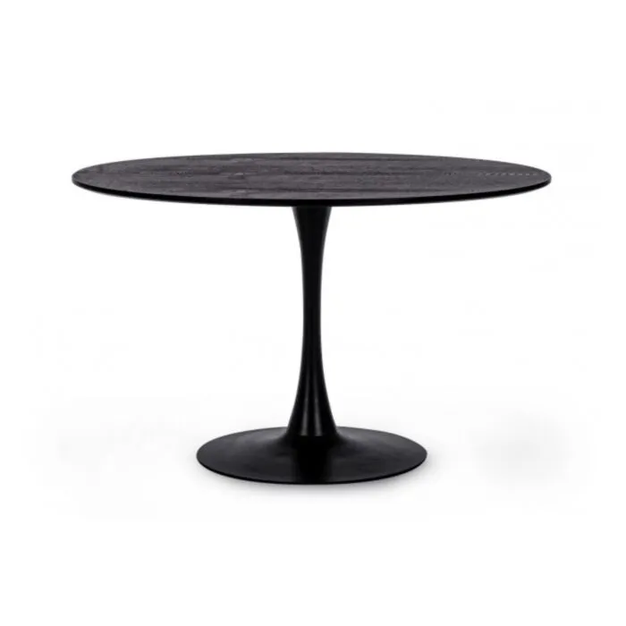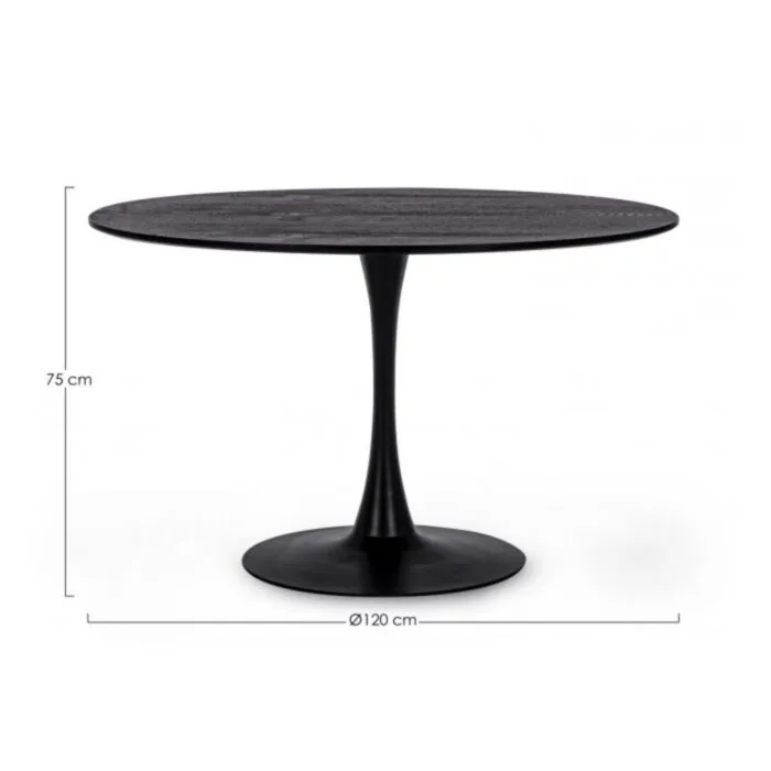 Jedilna miza BLOOM črna je elegantna okrogla miza, ki popestri vsak prostor. Mizna plošča je narejena iz furnirja in MDF – ja. Noge so kovinske v črni barvi.