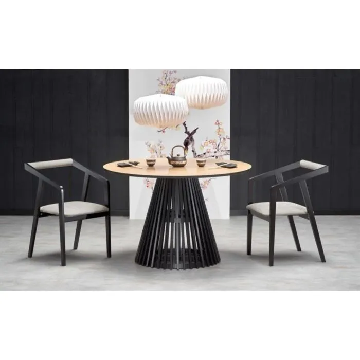 Jedilna miza JAGODKA, bo prinesla svežino in eleganco v vaš prostor. Narejena je iz kakovostnega MDF-ja, naravnega furnirja v hrast barvi in masivnega bukovega lesa. Mizna plošča je v barvi hrasta. Mizno podnožje pa je v črni barvi.
