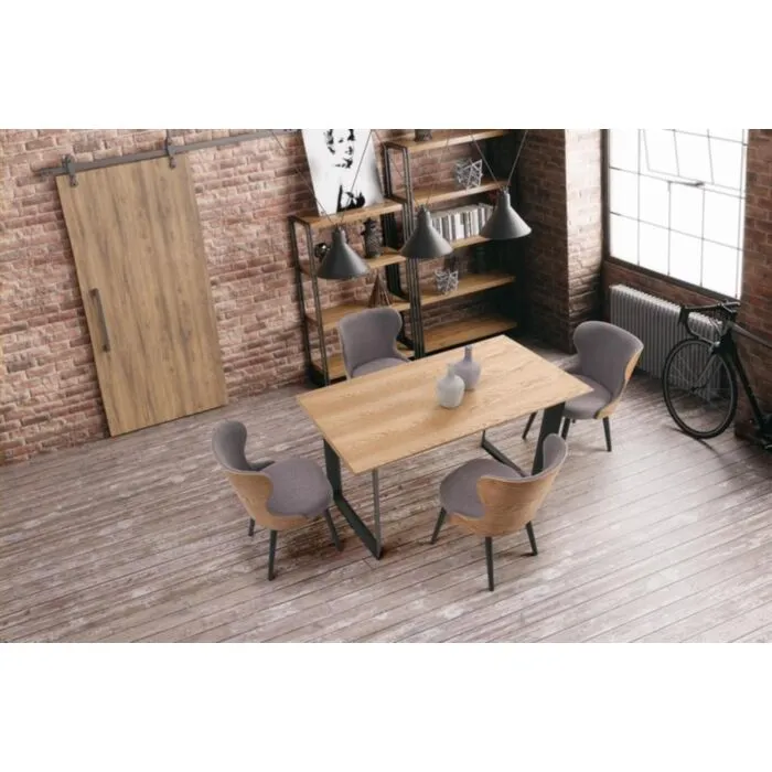 Jedilna miza JAKE je preprosta in elegantna miza, ki združuje ljubezen do topline lesa in moč kovine. Ima polico iz umetnega ratana pod mizno ploščo.