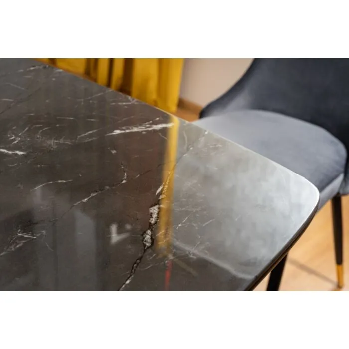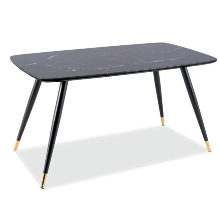 Naj s svojo eleganco tudi vaš prostor popestri miza KALI 2. Plošča mize je iz MDF in kaliranega stekla, efekt kamna . Noge mize so iz kovine v črno/zlati barvi.