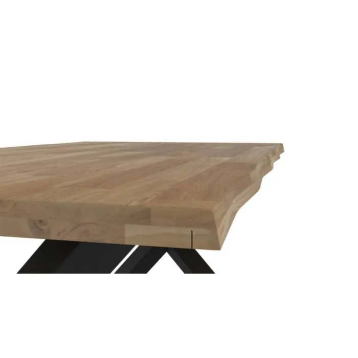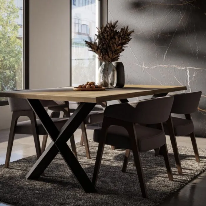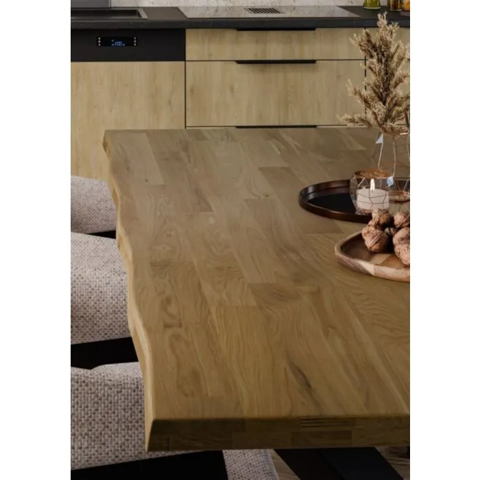 Jedilna miza MALIM je narejena do podrobnosti natančno. Očarali vas bodo njeni prefinjeno narejeni vzorci ter stabilnost. Narejena je iz visokokakovostnega masivnega lesa v barvi hrast. Za dodatno stabilnost ima kovinske noge, ki zagotavljajo eleganco in pripomorejo k dodatni stabilnosti. Miza ima ob straneh mizne plošče valovite dizajne, ki popestrijo celoten videz.