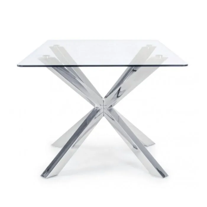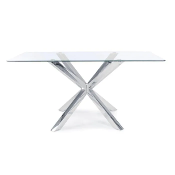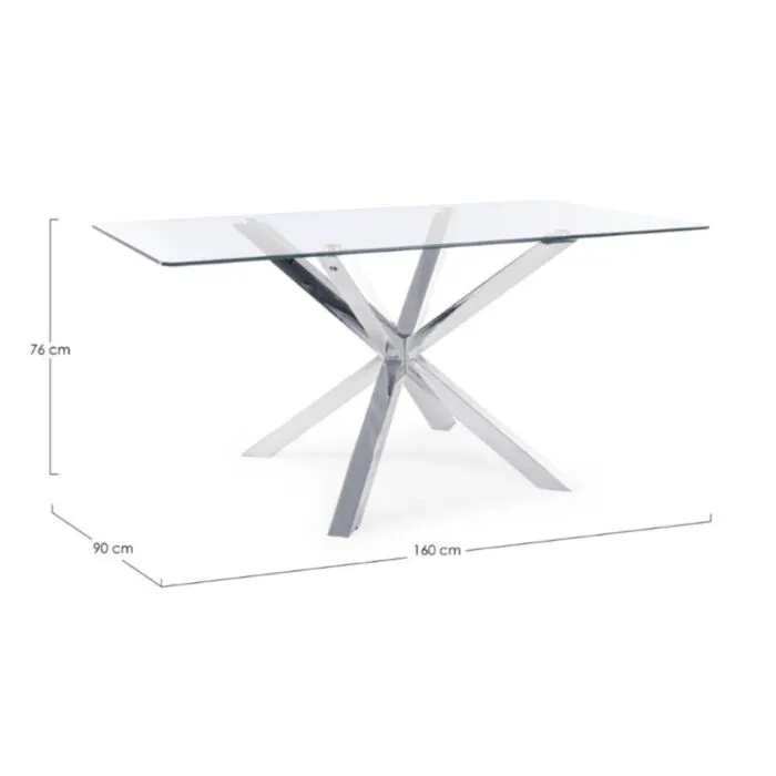 Jedillna miza MAY krom 160×90 je modernega dizajna. Noge so izdelane iz kromiranega jekla. Mizna plošča je izdelana iz kaljenega stekla debeline 10 mm.