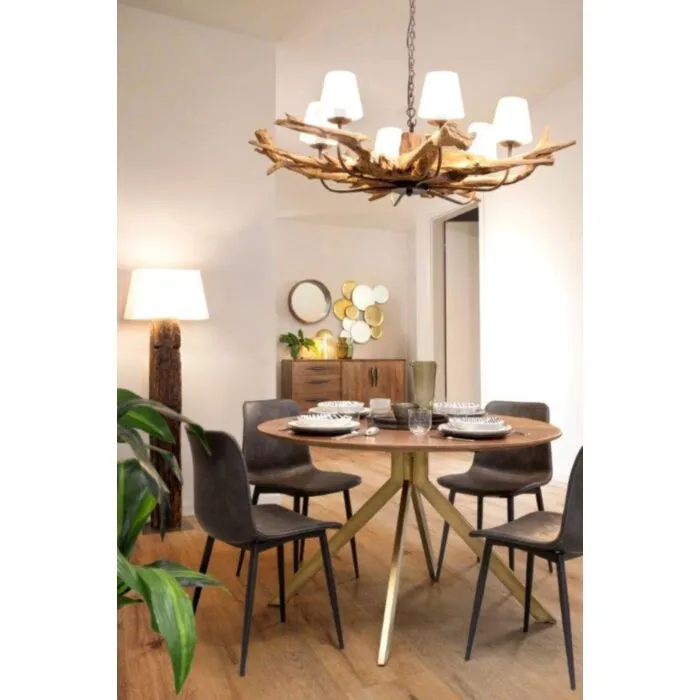 Jedilna miza SHERMAN je dobavljiva v rjavo-zlati kombinacji. Mizna plošča je lesena (mango), noge so kovinske- obdane z medenino.
