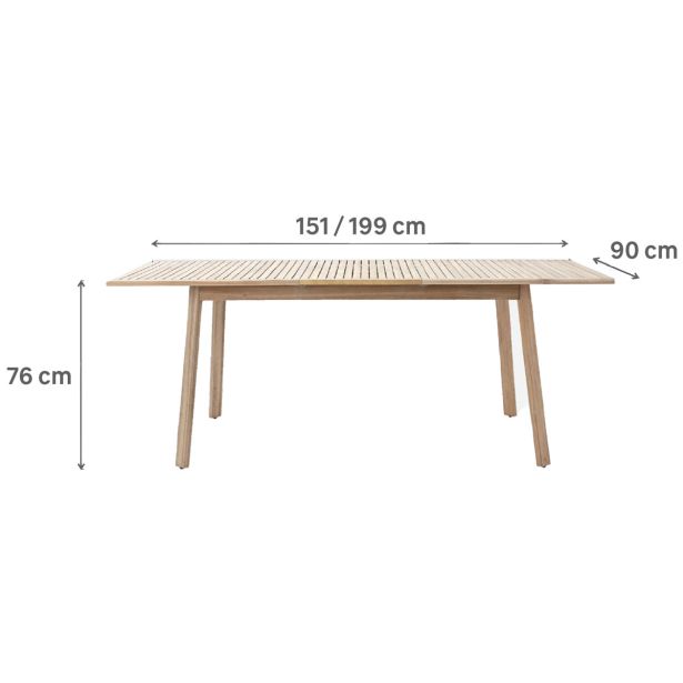 Odkrijte mizo Solis in njen naravni slog! Izdelana iz akacijevega lesa se lahko podaljša in sprejme do 6 oseb.
