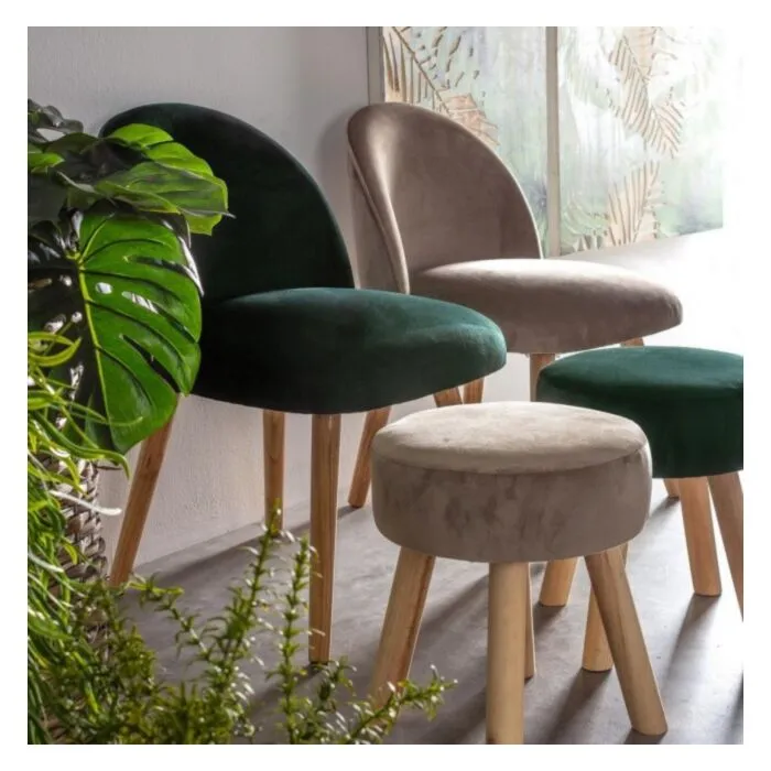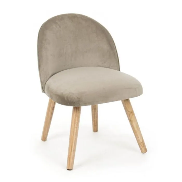Jedilni stol ADELINE taupe ima okvir iz borovega lesa in MDF-ja, noge so iz hrastovega lesa. Stol je oblečen v mehko žametno tkanino taupe barve.