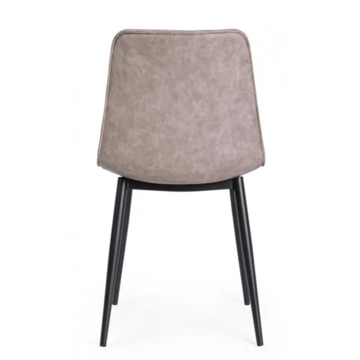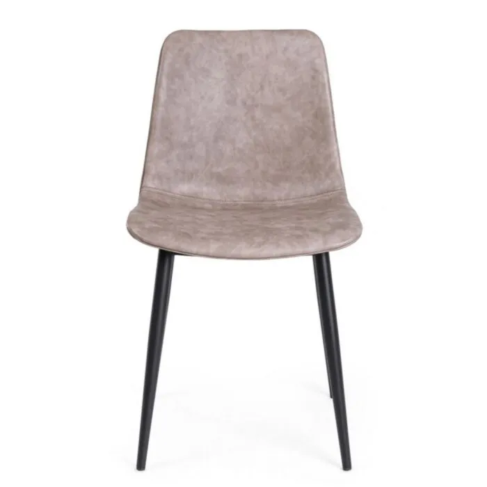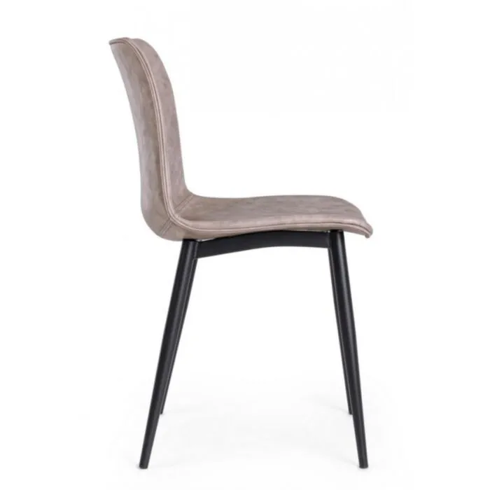 Jedilni kuhinjski stol KYRA je modernega dizajna. Oblazinjen je v bež umetno usnje, ki zagotavlja preprosto vzdrževanje. Noge so kovinske v črni barvi, kar daje stolu stabilnost.