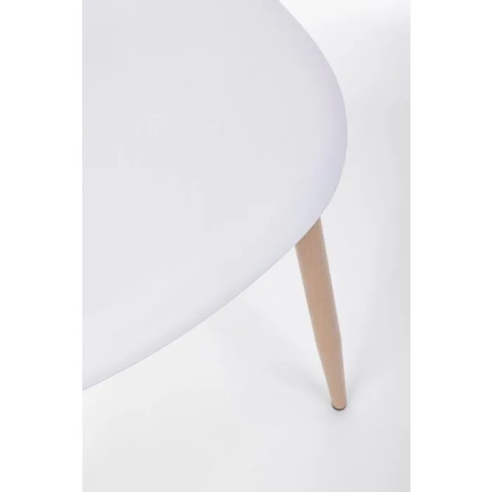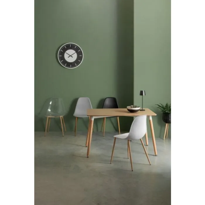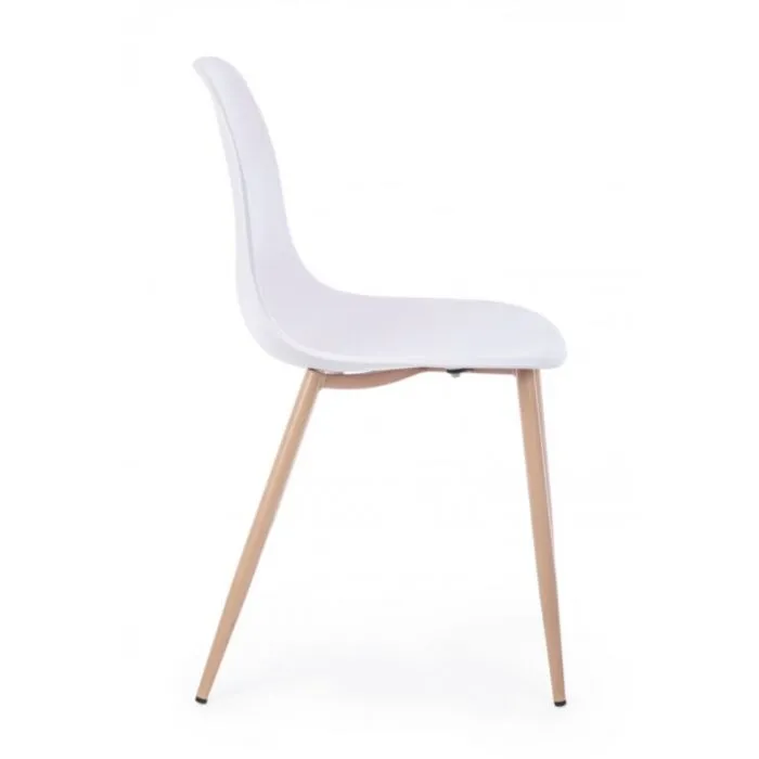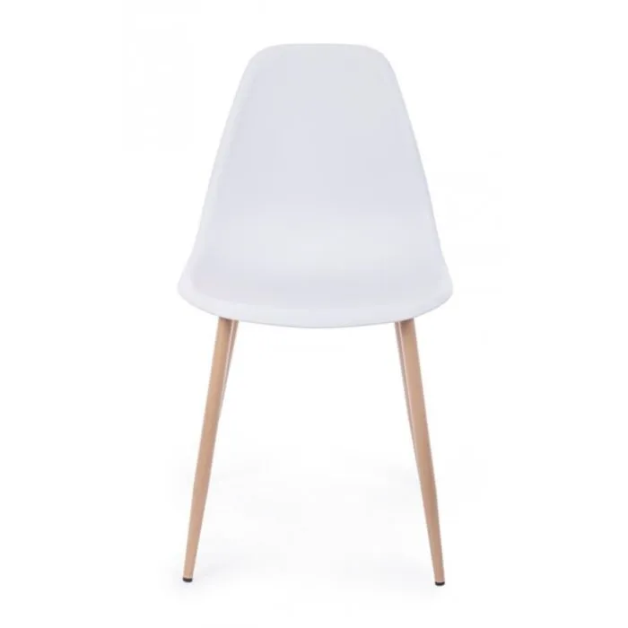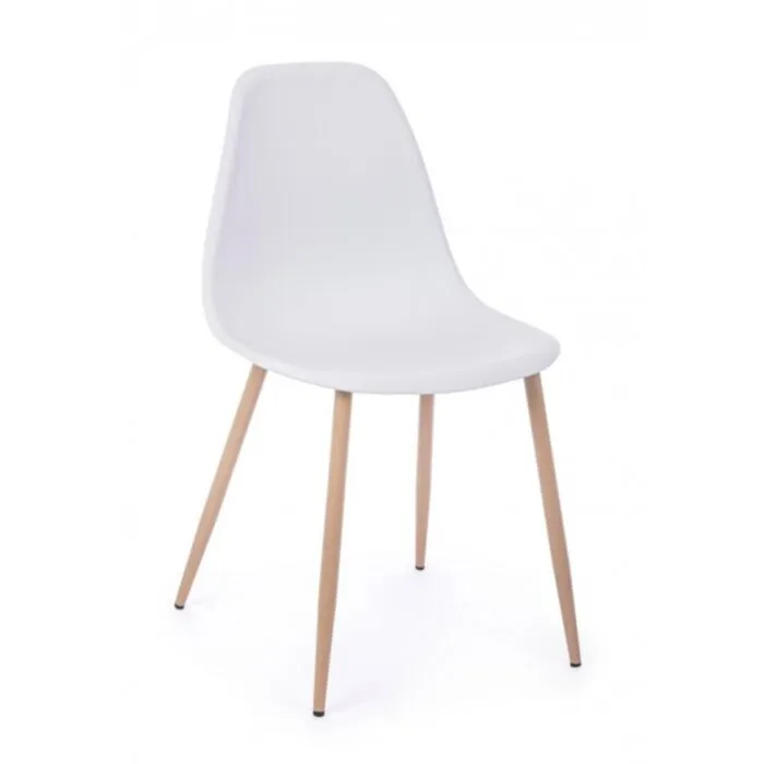 Jedilni stol MANDI je eleganten in moderen, podal se bo v vsako jedilnico. Na voljo je v beli barvi, s kovinskimi nogami v videzu lesa. Sedalni del je iz kakovostnega polipropilena kateri zagotavlja udobje in enostavno vzdrževanje.