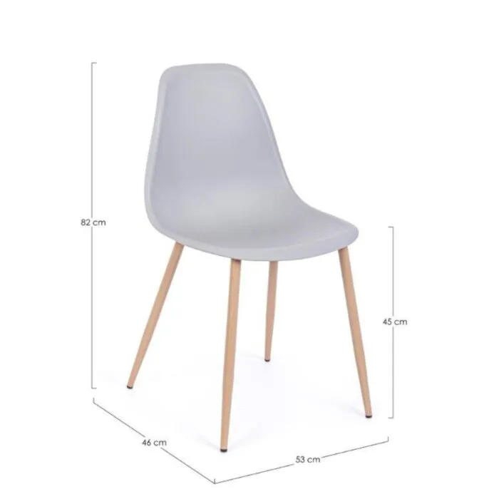 Jedilni stol MANDY je praktičen in sodobnega dizajna. Sedalni del je izdelan iz trpežnega polipropilena v sivi barvi. Kar zagotavlja enostavno vzdrževanje. Stol je stabilen in ustvarja naraven videz, saj so noge narejene iz kovine v imitaciji lesa.