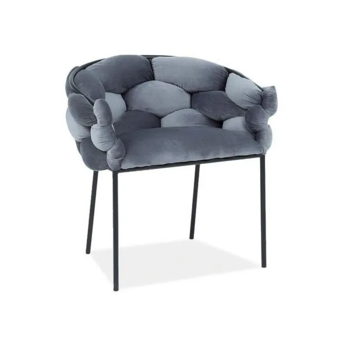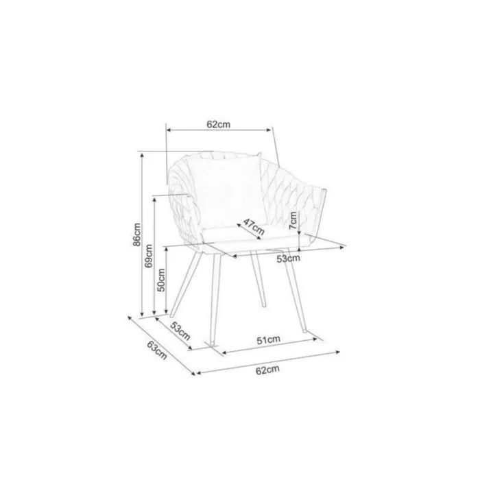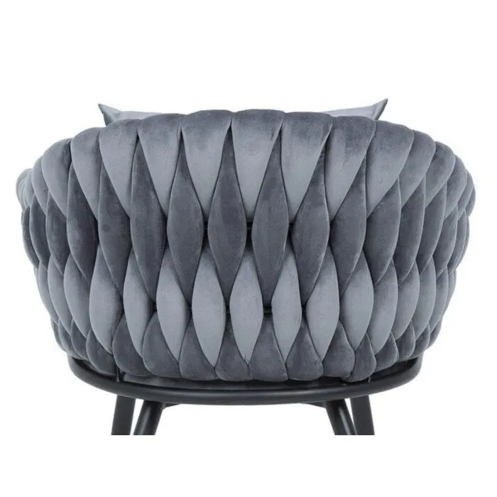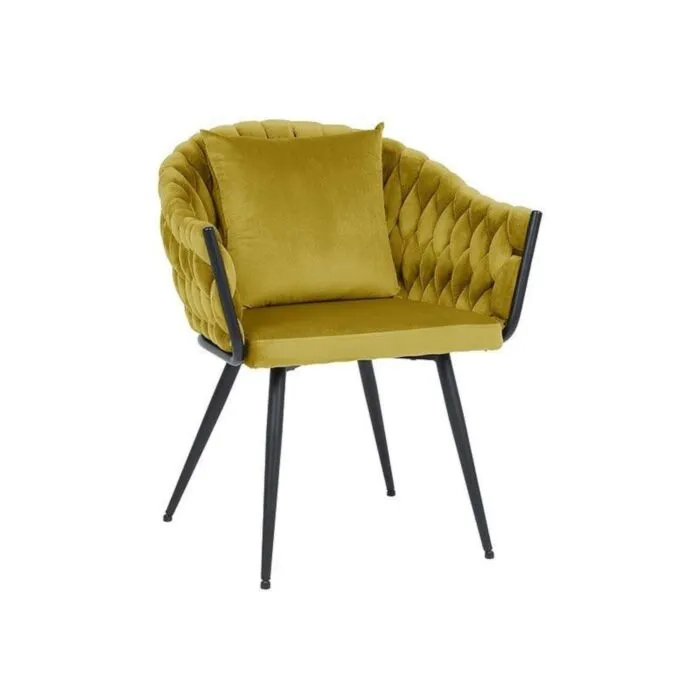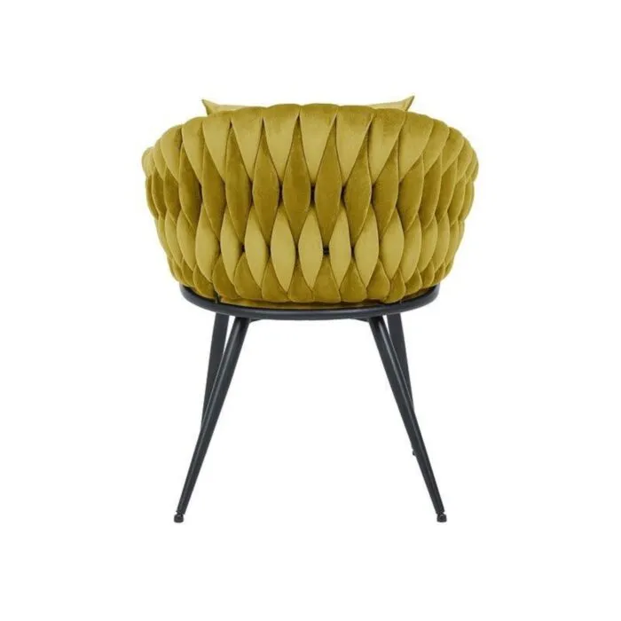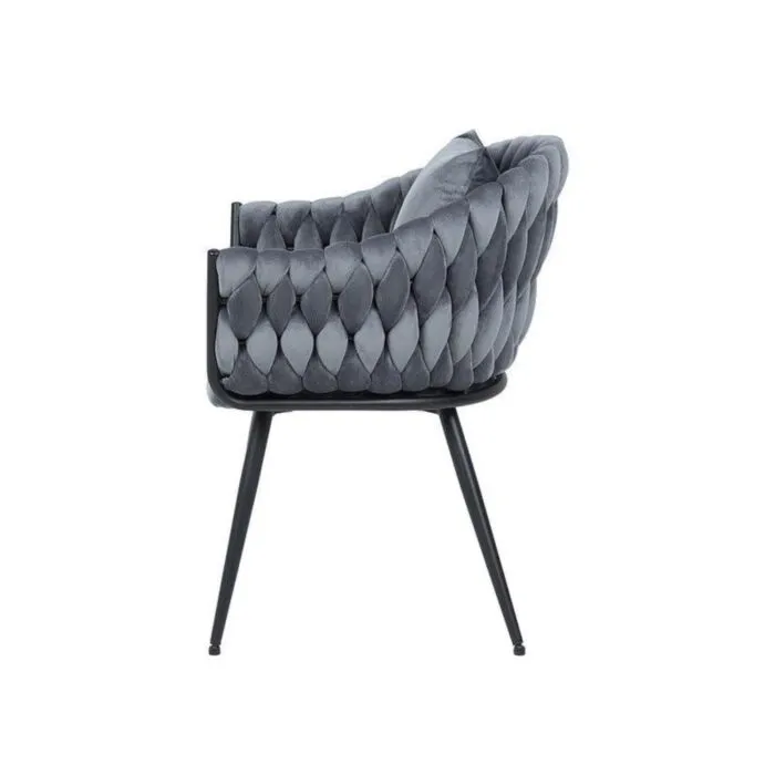Jedilni stol NEBIA nudi luksuz. S svojim dizajnom pletenega videza iz žameta, nudi moderen dizajn. Nogice so iz kovine v črni barvi zato je stol stabilen in vzdržen. Zraven vsakega stola prejmete pripadajočo blazino, kakor razvidno na sliki. Tako vam prestižni jedilni stol nudi še dodatno udobje.