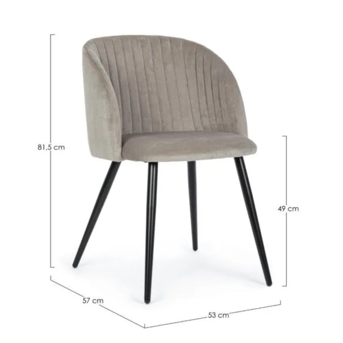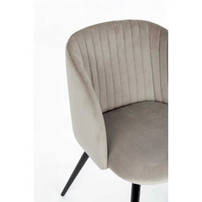 Jedilni stol QUEEN taupe je modernega dizajna. Črne kovinske noge zagotavljajo stabilnost. Sedalni del je narejen iz poliuretanske pene ki je oblečena v žametno tkanino. Stol nudi izjemno udobje in luksuzen videz.