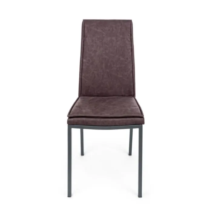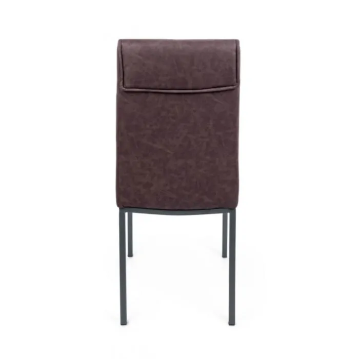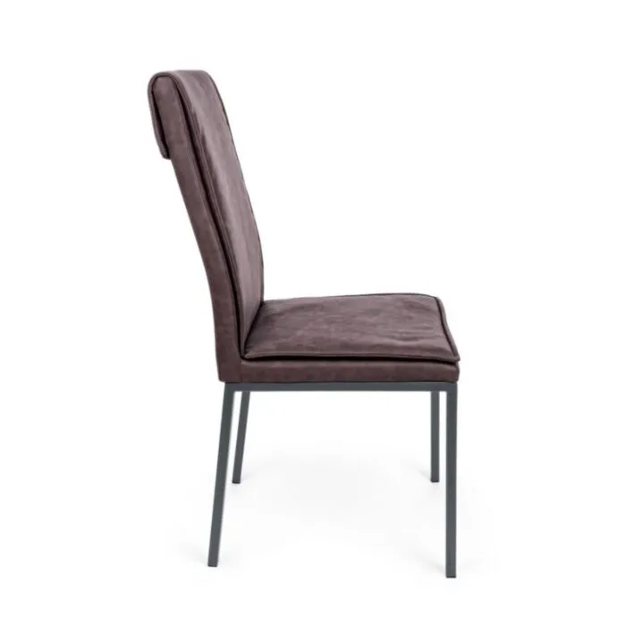 Jedilni stol SOFI rjava ima jekleno in vezano konstrukcijo.Polnilo je iz poliuretanske pene in oblečeno v rjavo umetno usnje. Noge so v črni barvi. Stol je zelo mehak in udoben.