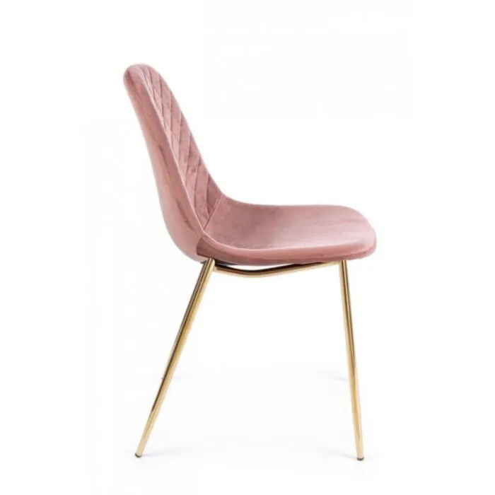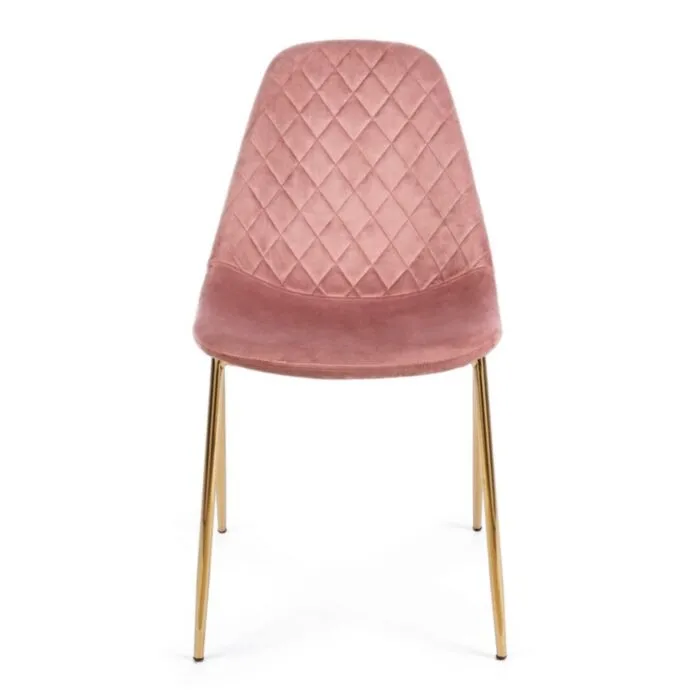 Kuhinjski stol TERRY je sestavljen iz kovinskih cevastih nog, z zlatim kromiranjem. Naslonjalo in sedež sta obložena s poliuretansko peno in oblečena v žamet (100% poliester).