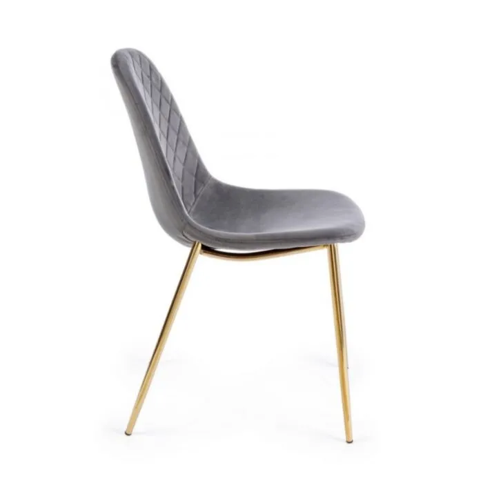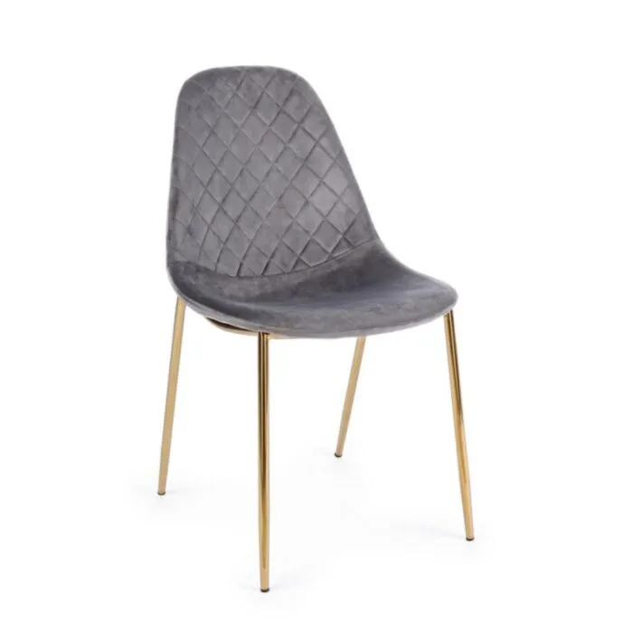 Kuhinjski stol TERRY je sestavljen iz kovinskih cevastih nog, z zlatim kromiranjem. Naslonjalo in sedež sta obložena s poliuretansko peno in oblečena v žamet (100% poliester).