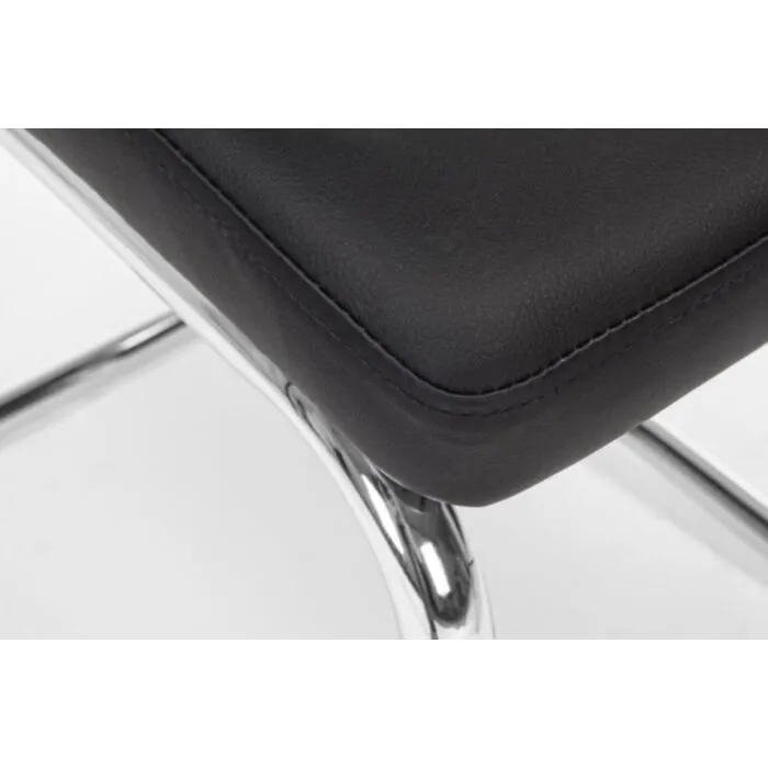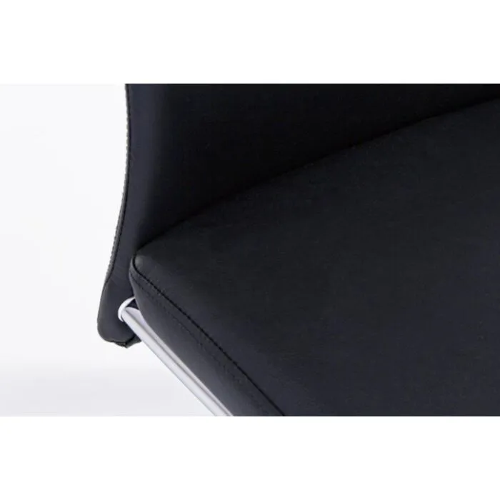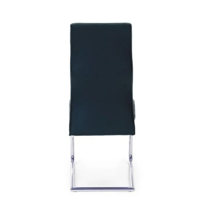 Jedilni stol THELMA črna je modernega dizajna. Noge so narejene iz trpežnega jekla v krom barvi. Kar daje stolu pridih prefinjenosti. Sedež in naslonjalo sta polnjena z poliuretansko peno, ki je oblečena v sivo umetno usnje kar omogoča enostavno čiščenje.
