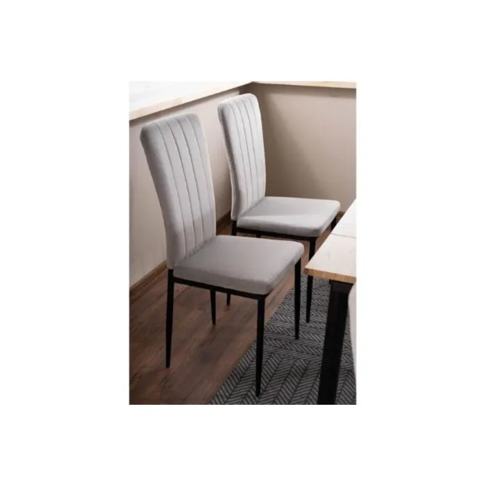 Jedilni stol TWITI je čudovita kombinacija elegance in kakovosti. Izdelan je iz nežne žametne tkanine, ki je na voljo v različnih barvah. Njegove kovinske noge v črni mat barvi zagotavljajo stabilnost.