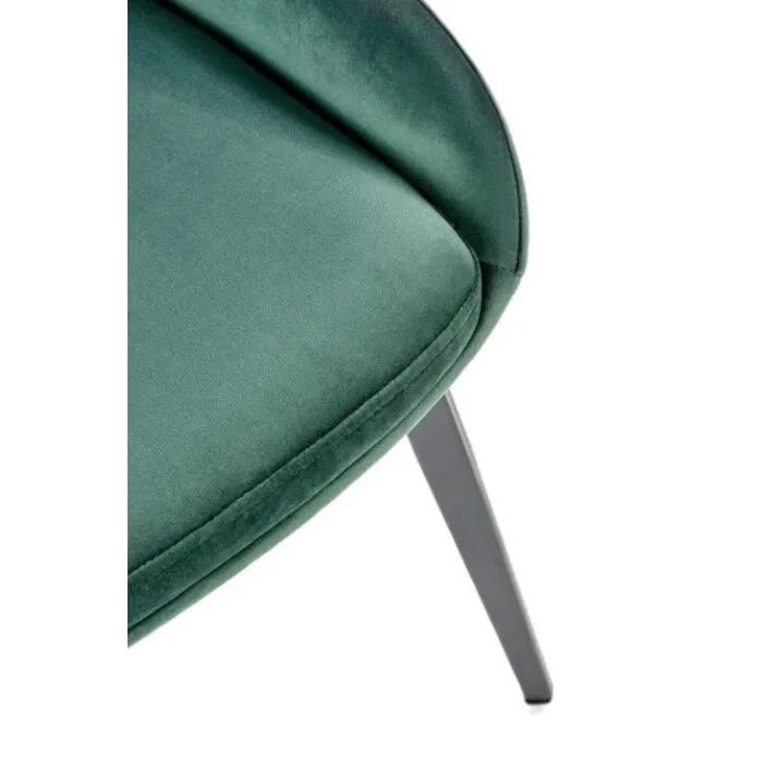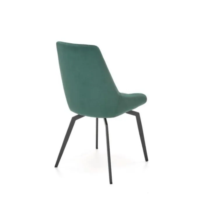 Jedilni stol VERENA – temno zelena, je kvaliteten in kakovosten kos pohištva. Sedišče je narejeno iz mehke žametne tkanine, kar zagotavlja udobje in prijetno sedenje. Elegantno podnožje je narejeno iz kovine v črni barvi, kar stolu zagotavlja stabilnost in trpežnost.
