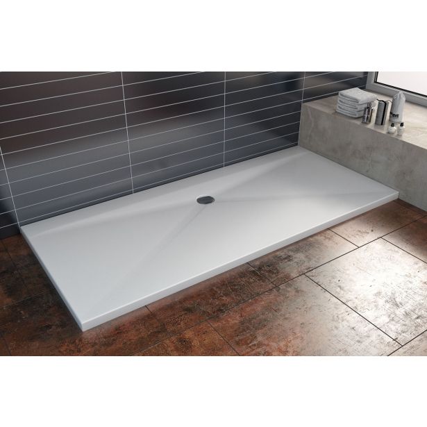 Tuš kad iz litega marmorja s plitvim dnom, ki jo je s prirezovanjem do dimenzije 110×70 moč popolnoma prilagoditi vašim potrebam. Minimalistično sodoben dizajn za maksimalno funkcionalnost. Brez podnožja. Za vgradnjo ali postavitev na tla.
