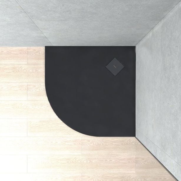 Polkrožna tuš kad iz litega marmorja z reliefno površino v temnem ali sivem odtenku čiste elegance.