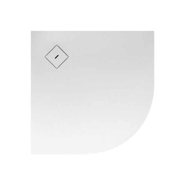 Polkrožna tuš kad iz litega marmorja z reliefno površino v temnem ali sivem odtenku čiste elegance.