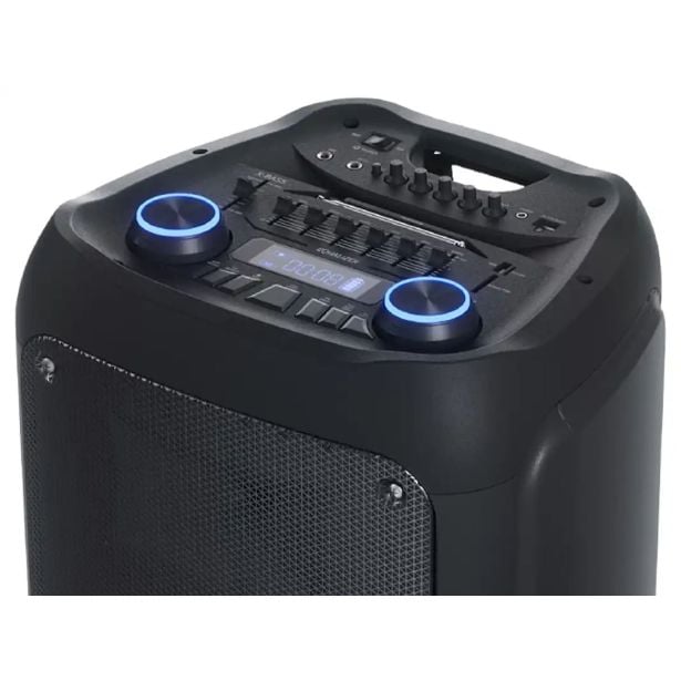 Vgrajena polnilna baterija s kapaciteto 12 Ah omogoča do 10 ur brezžične zabave, kar pomeni, da lahko svojo najljubšo glasbo predvajate kjerkoli brez skrbi glede napajanja. Poleg tega je zvočnik opremljen z atraktivno RGB LED osvetlitvijo, ki ustvari pravo “party” vzdušje in dodatno popestri vašo izkušnjo.