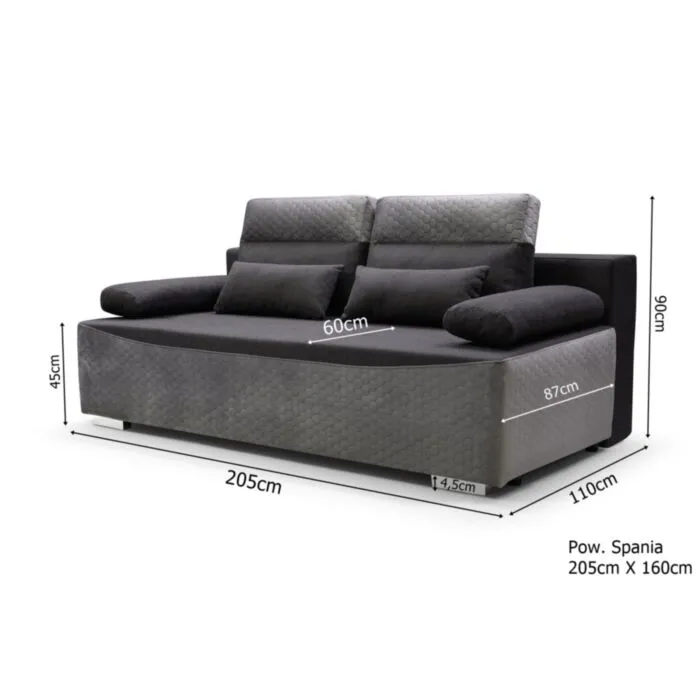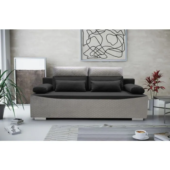 ALEŠA je sodoben in ekeganten kavč iz kakovostnih tkanin. Kavč lahko raztegnete v dodatno ležišče, kar zagotavlja dodatno udobje in sprostitev. Ima prostor za shranjevanje posteljnine. Zraven prejmeste okrasne blazine, ki dodatno popestrijo videz.