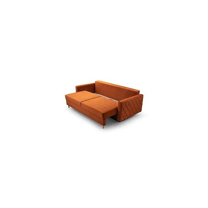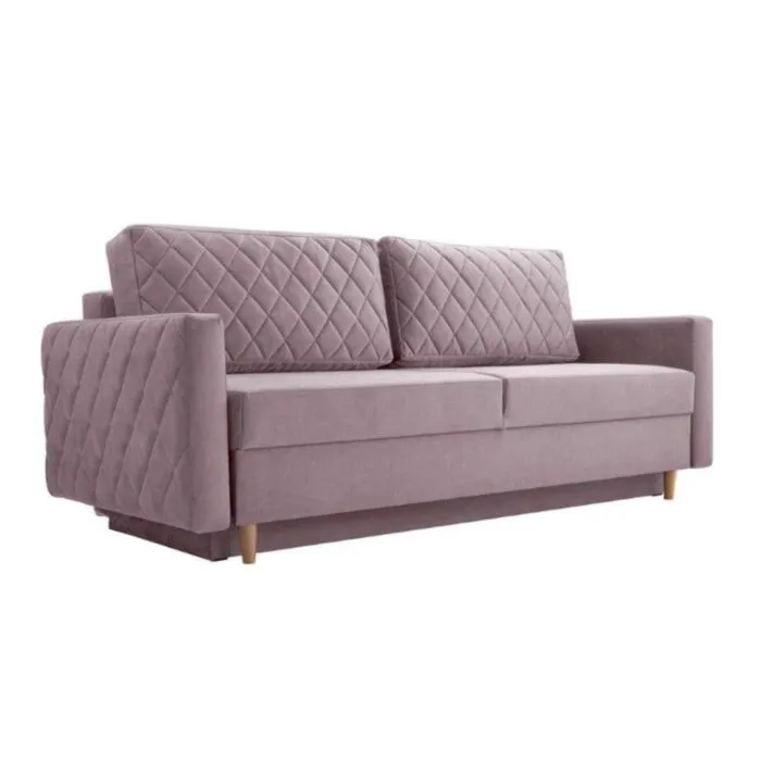 Kavč ENOLA se prilega v vsak dnevni prostor zaradi svojega modernega prešitega dizajna. Mehki nasloni za roke in blazine povečajo udobje uporabe. Ker ima hrbtno blazino obloženo s tkanino ga lahko postavite v katerokoli prostor na več načinov. Vsebuje dodatno ležišče, razstavi se pa zelo preprosto ter hitro. Posoda za posteljnino je dodatna prednost, ki bo prišla prav.