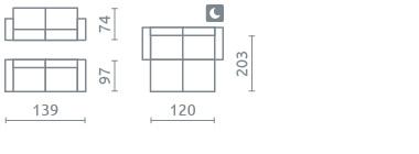 Kavč LENA prijetnega, klasičnega videza primeren za vsakogar, ki bi si želel majhen kompakten kavč z ležiščem. Dimenzije: 139 x 97 x 74 cm.