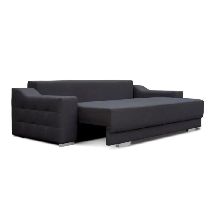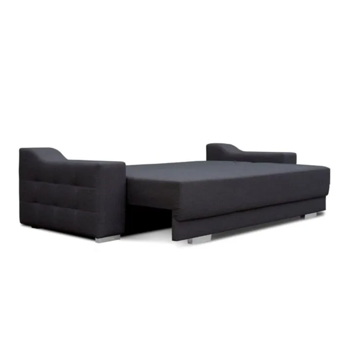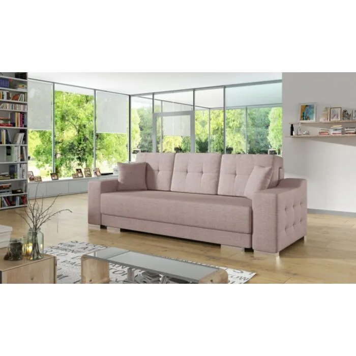 MARSAL je klasičen kavč iz kakovostne tkanine. Pri raztegnitvi v spalni položaj vam pomaga posebni mehanizem. Vzmetenje je valovitega tipa. Ima prostor za shranjevanje posteljnine. Zraven dobite dve okrasni blazini v barvi tkanine kavča.