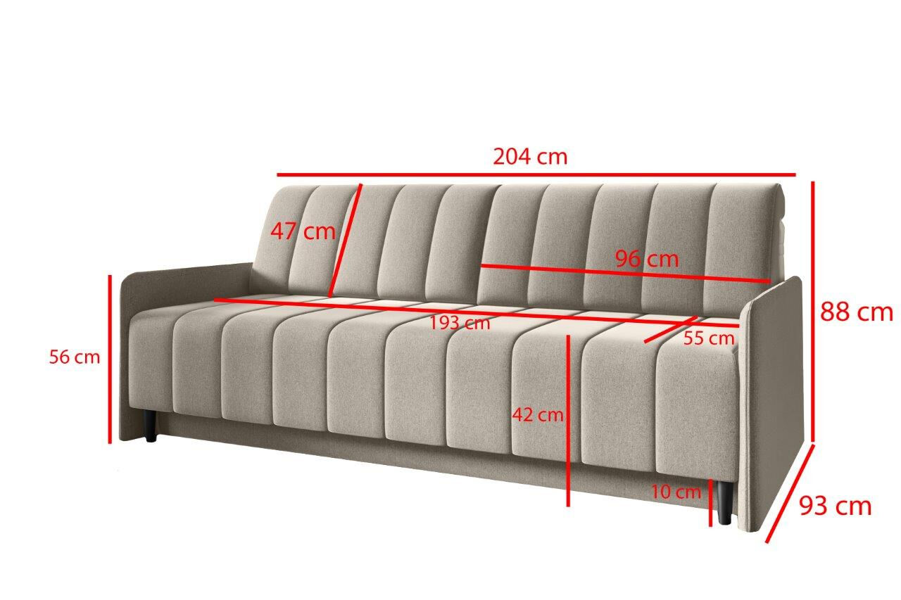 Kavč MELANI je idealen kos pohištva, da popestri prostor. Narejen je iz kvalitetnih materialov in kakovostnega blaga. Kavč je vzmeten. Raztegne se v ležišče in ima zaboj za spravljanje posteljnine.