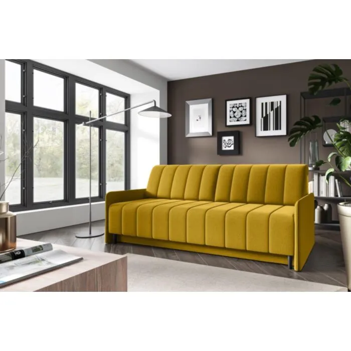 Kavč MELANI je idealen kos pohištva, da popestri prostor. Narejen je iz kvalitetnih materialov in kakovostnega blaga. Kavč je vzmeten. Raztegne se v ležišče in ima zaboj za spravljanje posteljnine.