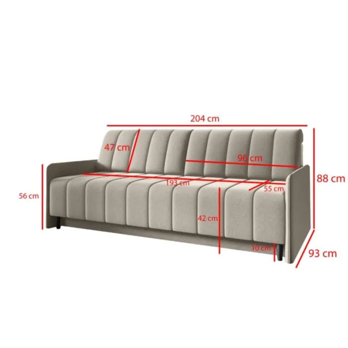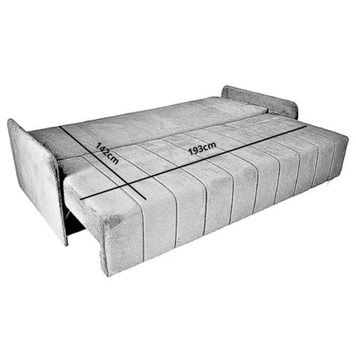 Kavč MELANI je idealen kos pohištva, da popestri prostor. Narejen je iz kvalitetnih materialov in kakovostnega blaga. Kavč je vzmeten. Raztegne se v ležišče in ima zaboj za spravljanje posteljnine.