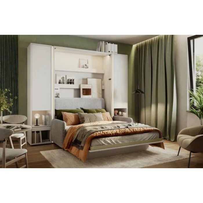 Kavč METULJ vam bo omogočila, da svojo dnevno sobo spremenite v spalnico le v nekaj trenutkih. Stenska postelja s kavčem je inovativna in moderna rešitev, ki bo kot nalašč za manjša stanovanja in garosnjere. Dvižna omara s kavčem Vam bo omogočila, da ponovno odkrijete svoj prostor. Zaradi dobavljivosti v več barvah, ga lahko kombinirate na več različnih stilov pohištva. Kavč je narejen iz mehke tkanine, ki Vam bo nudila udobno oporo med večernim branjem in je idealna za vsako notranjost. Kavč se montira na dvižno stensko posteljo METULJ 140 x 200 cm in ni namenjen samostojni uporabi. Poleg prejmete okrasne blazine, ki so polnjene s silikonskimi kroglicami. Hrbtna blazina je narejene iz pene, puhastih vlaken ter čez ima prevleko. Sedežna blazina je polnjena s HR peno, puhastimi vlakni ter oblečen je v blago. Stranice so narejene iz laminirane plošče ter pene, ogrodje sedeža je iz bukovega lesa, vsebuje valovite vzmeti, flic ter oblečen je v blago.
