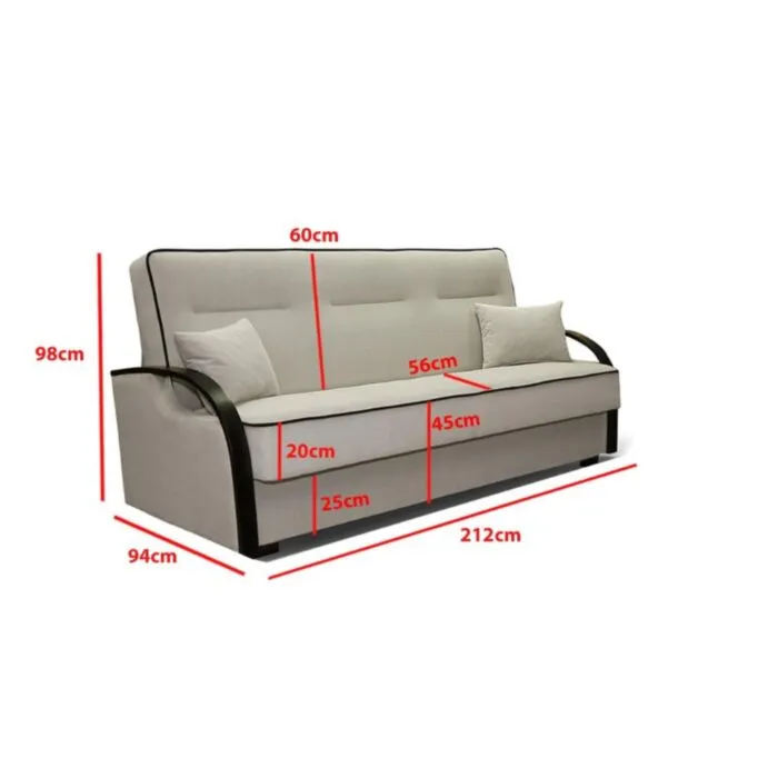 Kavč PEGAS 1 je idealen kos pohištva, da popestri prostor. Garnituri dodajo dodatno eleganco črni nasloni za roko ter črni robovi. Je odlična garnitura po odlični ceni. Narejen je iz kvalitetnih materialov in kakovostnega blaga. Kavč je vzmeten z vzmetmi tipa bonell. Raztegne se v udobno ležišče in ima zaboj za spravljanje posteljnine. Na voljo je v več barvah. Zraven garniture dobite pripadajoče blazine.