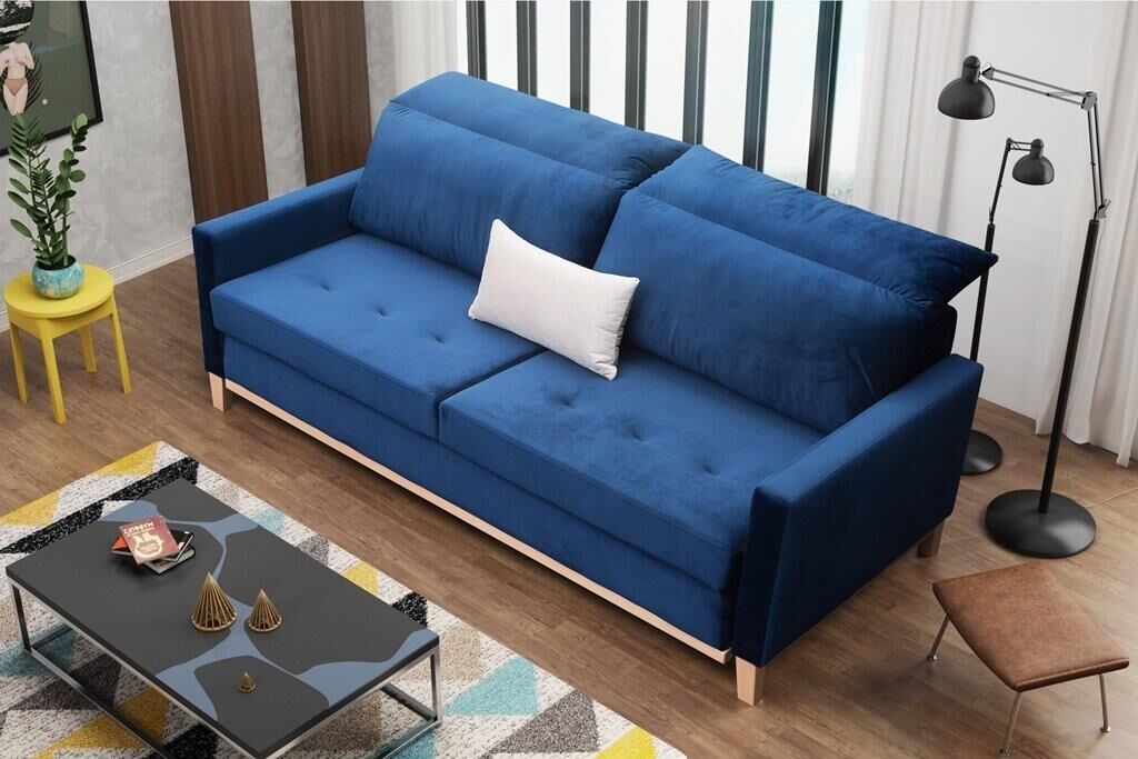 Moderen kavč PERRY je narejen iz kvalitetne tkanine in ima snemljivo oblazinjeno hrbtišče. Ogrodje in noge so iz lesa. Kavč se lahko raztegne v spalno pozicijo.