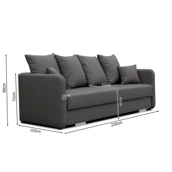 Kavč SENEKA je praktičen in eleganten. Narejen je iz kvalitetnega blaga. Pri raztegnitvi vam pomaga mehanizem. Kavč ima predal za spravljanje posteljnine. Ob nakupu dobite okrasne blazine v barvi tkanine kavča.