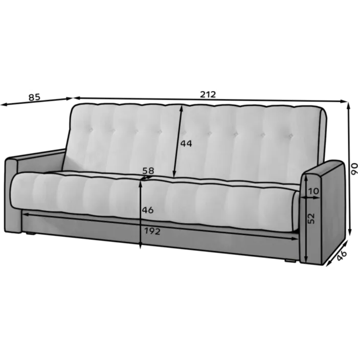 – D: 212 cm x G: 85 cm x V: 90 cm