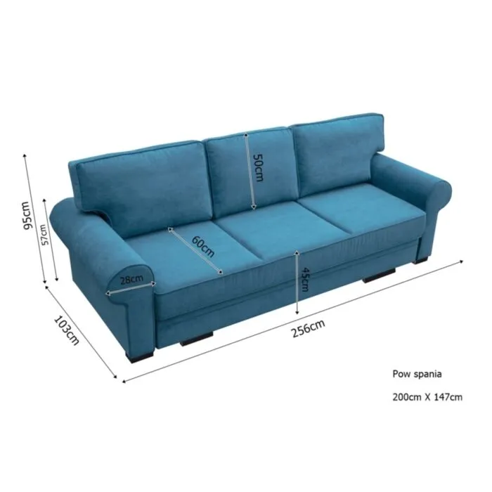 SORBET je moderen in eleganten kavč iz kakovostne tkanine. Pri raztegnitvi v spalni položaj si pomagate s posebnim mehanizmom. Vzmetenje je valovitega tipa. Ima prostor za shranjevanje posteljnine.